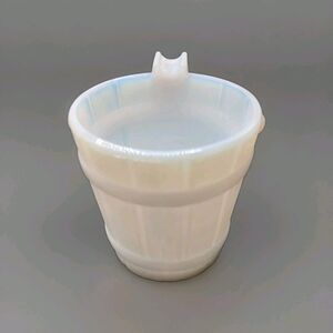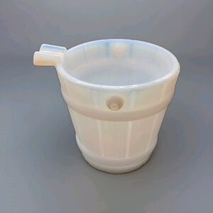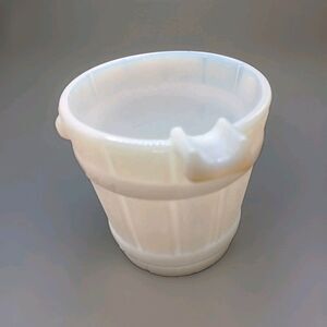 Opal 50's Vintage White Milk Glass Wood Pattern Water Bucket Pail Single Ashtray