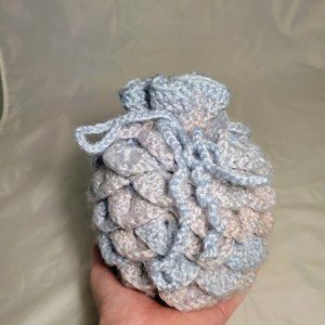 Crochet bags made to look like dragon eggs, these are the perfect item for any fantasy fan! Be the envy of your D&D group with this unique dice bag.