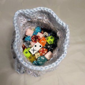Inside is crocheted tight to avoid any holes for dice to slip through. Comes with drawstring closure.