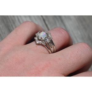 Opal Engagement ring set, raw stone ring, alternative engagement ring, u…