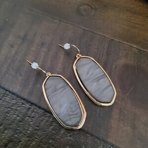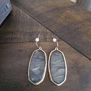 Details - faux black stone, opal finish, gold tone, drop earrings, fishhook insert, fairly lightweight