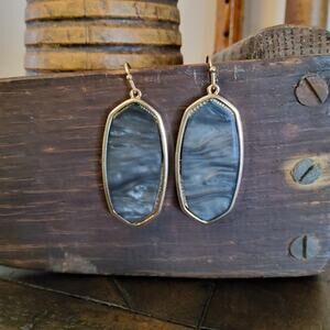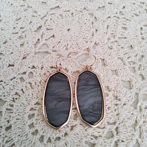 Opal Finish Black Stone Gold Tone Dangle Earrings