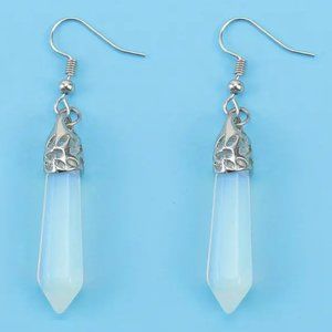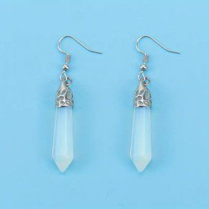 Opal Hexagon Point Glass Stone Dangle Earrings