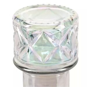 This opal iridescent glassware set includes three pieces and features an iridescent finish, making it a striking decorative centerpiece. Crafted from glass, it embodies a contemporary style suitable for entertaining or as a gift. The set has a glossy finish and is new with tags.