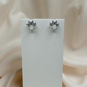 Opal Paw Print Stud Earrings. Made with silver white opal and plated in 18k gold