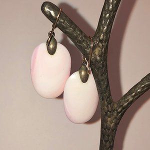 Pink Opal Dangle Hook Handmade Earrings, designer unknown. Excellent condition. Measures 1.5"L x .75"W. Pretty pink with white accents.
