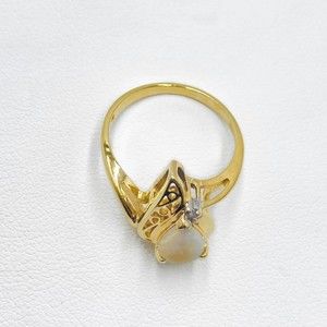 Beautiful Coober Pedy opal ring in a yellow-gold setting Stone Type: Coober Pedy opal, diamond; Opal shape: pear; Diamond shape: round; Diamond size: apx. 0.01 ct.; Metal type: 14k yellow gold; Ring Size: 6 ½; Please, when placing an order fill out the form carefully, make sure you provide an actual shipping address. We will not reroute your order in case the item has been already shipped. The photo may have been enlarged and/or enhanced. All gemstone carat weights (ct. t.w.), if mentioned, are approximate variance may be .05 carat.