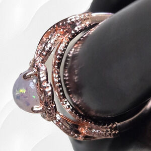 Opal Rose Golden Round Stone Twisted Band Cubic Zirconia Fashion Ring Size 8