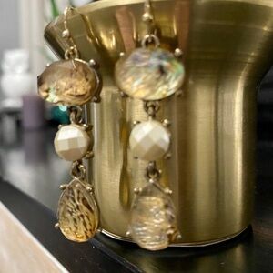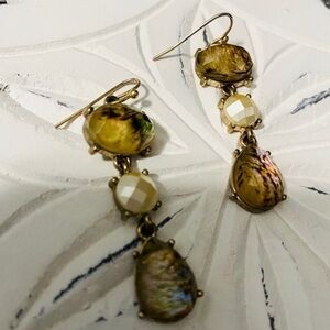 Opalescent earrings in gold tone finish. Very beautiful. Pre owned excellent condition. Item will be cleaned and disinfected prior to shipping.