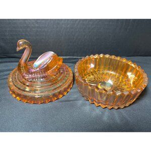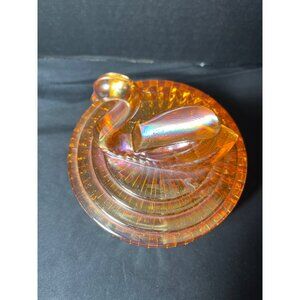 Opalescent Jeanette Glass Swan Covered Candy Powder Dish Carnival Glass 5”