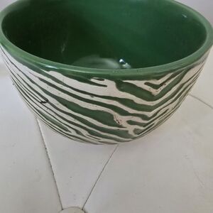Stylish ceramic bowl with a bold green and cream design. Ideal for enhancing your home decor.