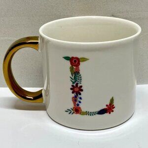 Opalhouse Mug * L * Floral Monogram White Porcelain Gold Handle Target Cup MINTY
