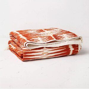 Opalhouse Printed with Fringe Groove Print Quilt White/Burnt Orange NWT