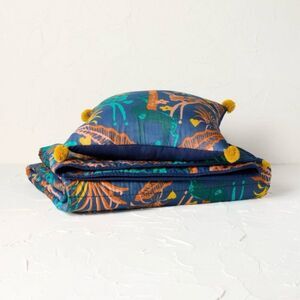 Opalhouse Throw Blanket & Pillow Set Blue Fiesta Jungle Print Tassel