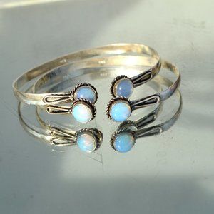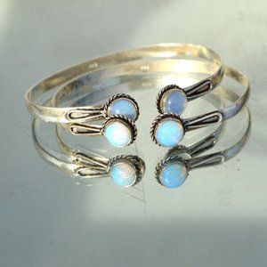 Opalite Bracelet Silver Plated 2 Cuffs Set Boho
