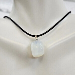 Opalite Natural Stone Cube Necklace with 18in Black Chain SN8