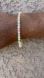 Elevate your style with this gold and Opalite beaded bracelet. This elegant piece features shimmering opalescent beads paired with a gold-fill one inch extended chain, perfect for any occasion.