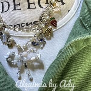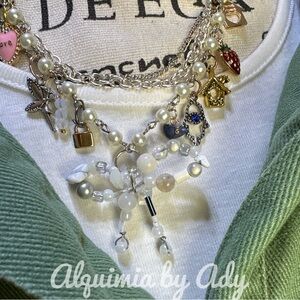 Opals pearls lapis and coral multi charms layered chunky necklace