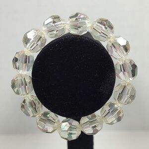 Opaque Clear Iridescent Plastic Beaded Stretch Fashion Bracelet 5.75" Bridal