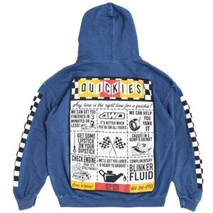 Whether you're tuning up your ride, cheering from the stands, or just cruising around town, the Quickies Pit Stop Hoodie has got you covered. So, rev up your style, grab this hoodie, and show the world that you're all about speed, style, and good times.