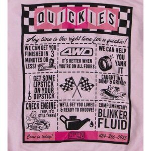 Bold "Quickies Pit Stop" Graphic for Car Lovers