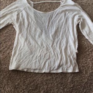 3/4 sleeved, cream colored top. Back is open with cross detail. Perfect to wear with lacy bralettte or bandeau! In great condition, only worn a few times