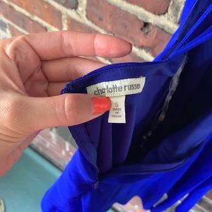 Beautiful blue dress with open back. Worn once. Very unique color that really pops.