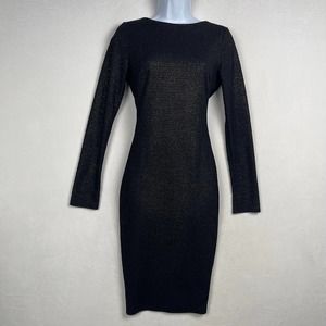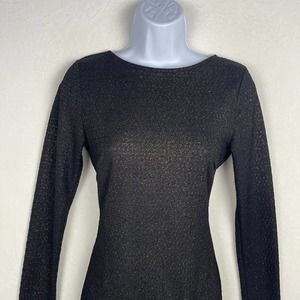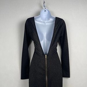 Open Back Full Gold Back Zipper Long Sleeve MONACO Black Bodycon Dress, Medium. Has lots of stretch and a bit of shimmer