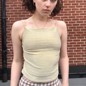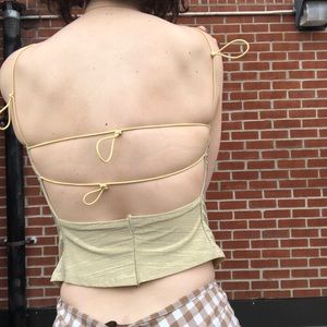 Gold sparkly open back strapping top. Tied because it isn’t my size but still very comfortable!! Would also fit MEDIUM