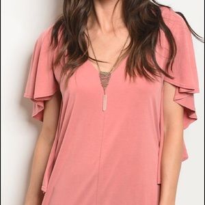 HUMMINGBIRD Blush Open Back Ruffle Detail Mini Dress