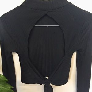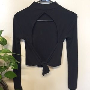 Worn once, back ties at the bottom. High collar, open back crop top. Ribbed material.
