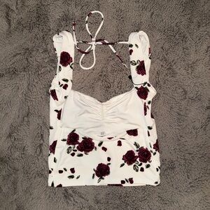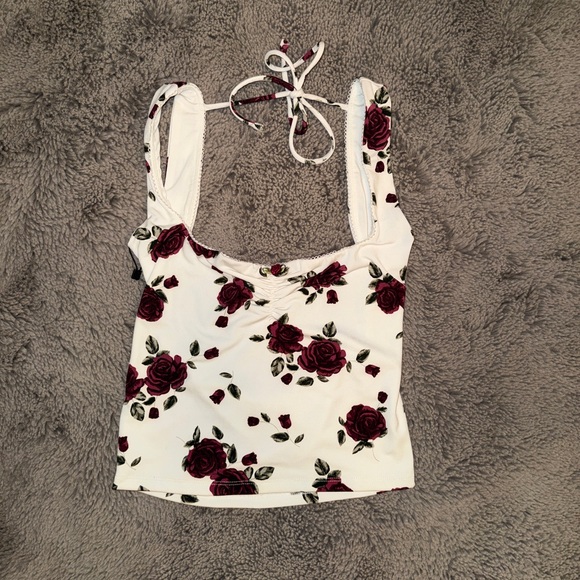 Soft square-neck tank top with open back tie straps. Lightweight stretch fabric for a comfortable, flattering fit. Never worn
