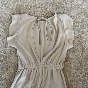 Beautiful open back romper with tie back detail. Pockets. With flowy pants and flutter sleeve. Great condition. Pet free and smoke free home.