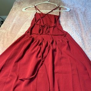 Beautiful burgundy sundress. The back is open with criss cross tie straps.