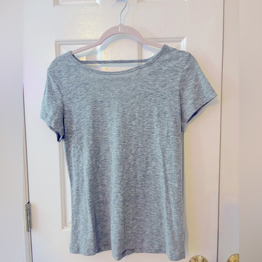 Gray JONDIE open back short sleeve tee.