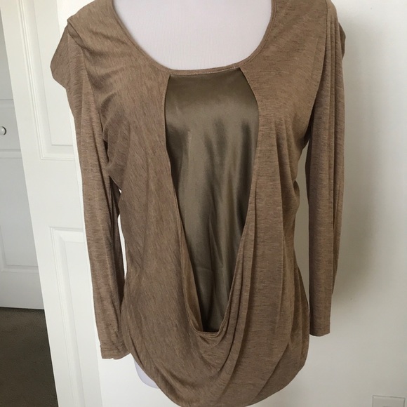 A brownish-gold open back top with shiny camisole look underneath is perfect for date night or any night.