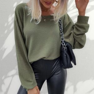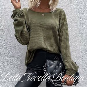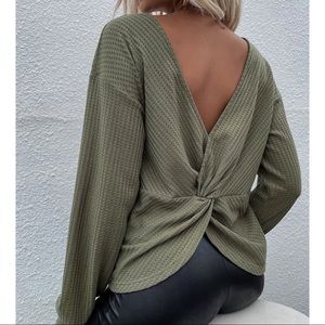 Open Back Twist Waffle Knit Top Dusty Olive Green