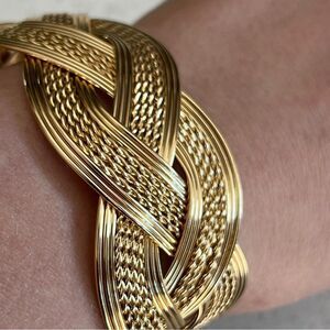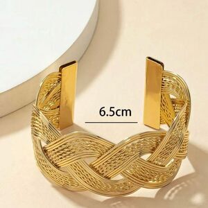 Open Bangle Bracelet With Wave Design in Gold Color