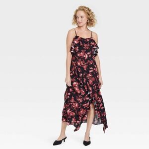 Show off your easy-breezy style as you take on casual days with this Cold-Shoulder Midi Dress from A New Day. The floral midi dress is crafted from lightweight crepe fabric to offer breathable comfort throughout the day. It's styled with a ruffled square neckline and side slit for a flattering look, while adjustable straps lend a customizable fit. Complete the look with your choice of footwear and accessories.A New Day: Style that goes wherever you do.