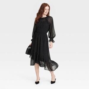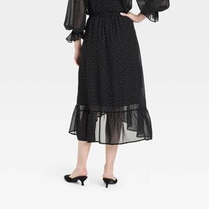 Open Box - A New Day - Women's Ruffle Midi Skirt - A New Day Black Polka Black