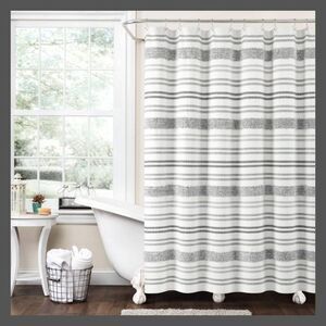 Open Box - Lush Decor - Modern Tufted Stripe Cotton Shower Curt Gray