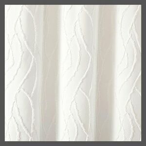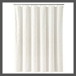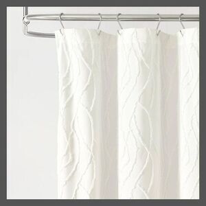 Embellished with a unique wave pattern, this Jacquard Wave Shower Curtain brightens your bathroom with tufted texture and a simple design. This white shower curtain is a great addition to a modern, boho, coastal, or cottage style bathroom. Add dimension to your primary or guest bathroom with this unique clip jacquard curtain, bringing a light and relaxing style to your space. The solid white color and textured design makes it easy to style with your existing decor. This coastal shower curtain measures 72 inches wide by 72 inches long. The prewashed microfiber fabric ensures long lasting softness and prevents shrinking. The 12 button holes at the top of this shower curtain make it easy to hang with hooks or rings, ensuring a simple installation process. Because this is a fabric shower curtain, we recommend pairing it with a liner, sold separately. This shower curtain is STANDARD 100 by OEKO-TEX® certified, which means the fabric, dyes and all components have been tested in an independent laboratory and certified against a list of more than 350 harmful substances. To care for this shower curtain, simply machine wash and tumble dry low. Please refer to label for full car