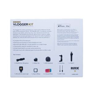 The iOS Vlogger Kit contains everything you need to get professional results when filming using your iPhone. The VideoMic Me-L microphone connects directly to your device, delivering crisp, clear, directional sound for any application. The SmartGrip secures your device firmly in place for stable recording and connects seamlessly to the Tripod 2 for either handheld or tabletop use, while the MicroLED ensures all your shots are perfectly lit.In the Box: VideoMic Me-L MicrophoneRubber ClipW59 WindshieldSmartGripTripod 2MicroLED On-camera lightClip-on Diffuser8 Colored FiltersUSB-C Cable