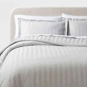 Open Box - Threshold - 3pc King Luxe Striped Damask Duvet Cover and Sham Gray
