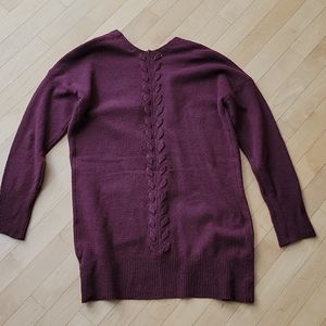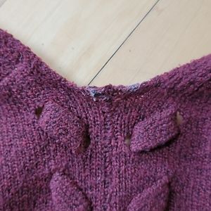Maroon open cardigan with pockets. Unique braid pattern down back.