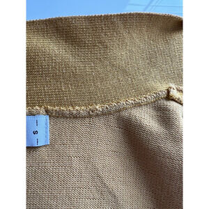 Open cardigan sweater, 3/4 sleeves, fitted wrists, mustard color, never worn.