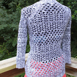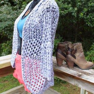 Open Crochet Kimono Cardigan Heathered Black White