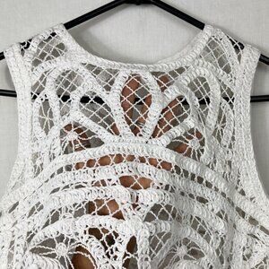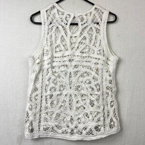 Open Crochet Knit Sheer Sleeveless Top Womens L High Neck Cottage Boho Gyspy