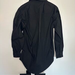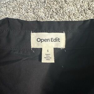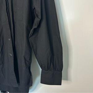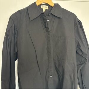 Open Edit 100% Cotton Poplin Oversize Button Down Blouse Small Black puff sleeve