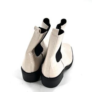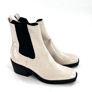Open Edit Ayla Chelsea Boots 8.5 White Croc Ankle Mid Calf Booties Western Heel